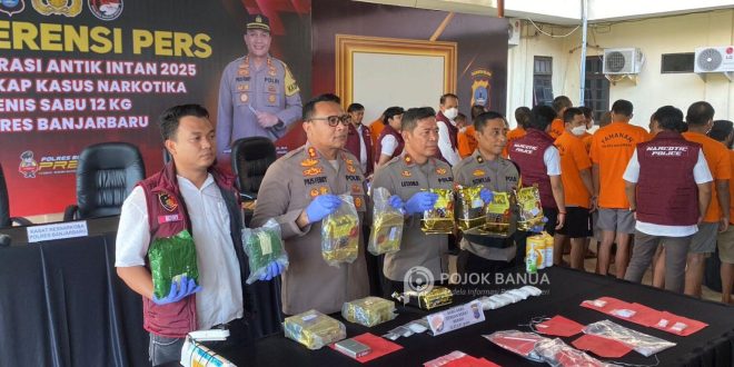 BANJARBARU – Kepolisian Resor Banjarbaru berhasil menggagalkan peredaran narkotika jenis sabu-sabu seberat 12,013 kilogram dalam sebuah pengungkapan yang dinilai sebagai salah satu tangkapan terbesar di Kalimantan Selatan pada tahun ini. Barang haram tersebut diamankan dari rumah salah satu tersangka berinisial NR di kawasan Alalak, Kabupaten Barito Kuala.