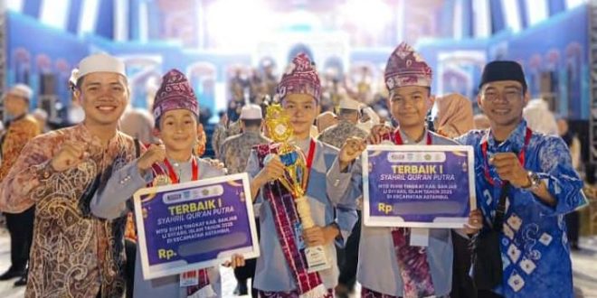 MARTAPURA – Perjalanan Tim Syarhil Qur’an Putra Kecamatan Simpang Empat menuju panggung Musabaqah Tilawatil Qur’an (MTQ) tingkat Provinsi Kalimantan Selatan tidak diraih dengan cara mudah. Di balik keberhasilan meraih juara pertama di tingkat Kabupaten Banjar, tersimpan kisah perjuangan panjang penuh kerja keras, doa, dan semangat pantang menyerah.