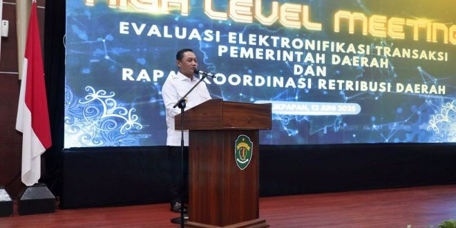 BALIKPAPAN – Komitmen Pemerintah Provinsi (Pemprov) Kalimantan Timur (Kaltim) dalam mempercepat transformasi digital pemerintahan kembali ditegaskan melalui penyelenggaraan High Level Meeting (HLM) Evaluasi Elektronifikasi Transaksi Pemerintah Daerah (ETPD) dan Rapat Koordinasi (Rakor) Retribusi Daerah Tahun 2025 yang digelar di Hotel Blue Sky, Balikpapan, Kamis (12/06/2025).