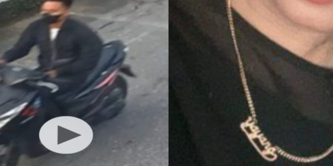 Ciri-ciri pelaku antara lain mengenakan masker, jaket berwarna hitam, serta memiliki potongan rambut pendek. Saat berada cukup dekat dengan korban, pelaku langsung menarik paksa kalung emas yang dikenakan korban, lalu melarikan diri dengan cepat meninggalkan lokasi kejadian.