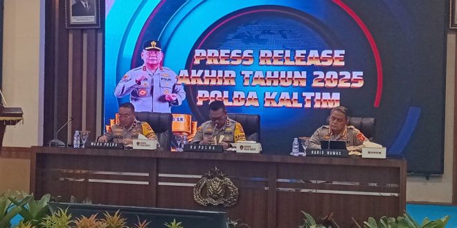 Pengakuan itu disampaikan Irjen Pol Endar dalam agenda rilis akhir tahun yang digelar di Gedung Mahakam Polda Kaltim, Selasa (30/12/2025). Di hadapan awak media, Kapolda menyampaikan permohonan maaf kepada masyarakat atas pelayanan yang dinilai belum sepenuhnya optimal. “Kami menyadari masih ada hal yang perlu diperbaiki, baik dari sisi kinerja maupun sikap personel,” ujarnya.