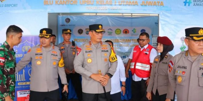 Di Bandara Juwata, Kapolda memeriksa langsung kondisi pos pengamanan sekaligus memantau aktivitas penumpang di area keberangkatan dan kedatangan. Kunjungan tersebut bertujuan memastikan seluruh sistem pengamanan berjalan optimal selama meningkatnya mobilitas masyarakat pada masa mudik.