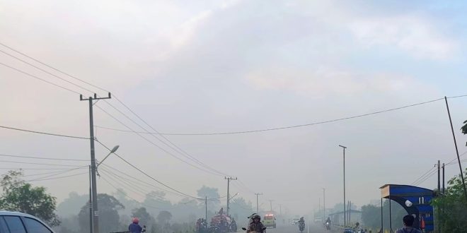 Rabu (08/10/2025) sore, kepulan asap kembali menggulung kawasan Jalan Ahmad Yani, Kilometer 25. Api melahap semak belukar dan merayap cepat, membuat warga terpaksa kembali menghirup udara bercampur jelaga.
