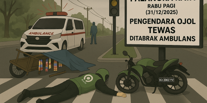 PALANGKA RAYA – Sebuah kecelakaan tragis menimpa pengendara ojek online (Ojol) di Kota Palangka Raya, Rabu (31/12/2025) pagi. Akbar, mitra Gojek yang tergabung dalam komunitas Ojol Palangka Raya, meninggal dunia setelah sepeda motornya bersenggolan dengan ambulans di persimpangan lampu merah Sethadji.