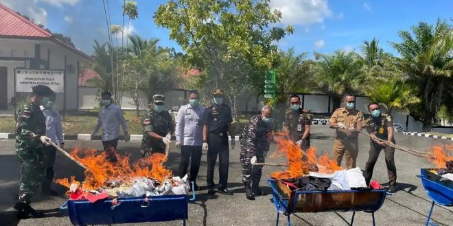 NUNUKAN – Ratusan barang bukti dari berbagai perkara yang telah berkekuatan hukum tetap sepanjang 2025 dimusnahkan Kejaksaan Negeri (Kejari) Nunukan. Pemusnahan dilakukan di halaman kantor Kejari, Senin (24/11/2025), disaksikan sejumlah instansi terkait sebagai bentuk transparansi penegakan hukum.