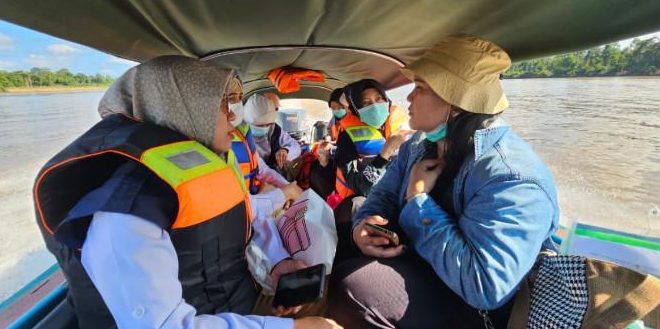 Melintasi Sungai Barito, jalur transportasi utama menuju puskesmas, tim menempuh hampir empat jam pulang-pergi dengan speed boat dari pelabuhan Kota Buntok. Kedatangan mereka disambut hangat oleh kepala puskesmas dan petugas pelayanan kefarmasian. Pemeriksaan berlangsung lancar, dengan petugas puskesmas aktif berdiskusi dan menanggapi arahan tim.