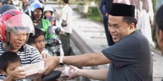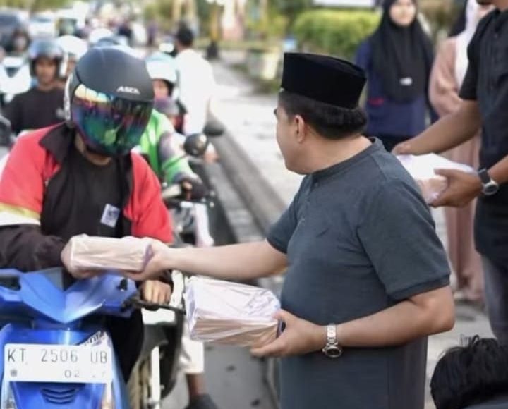 KUTAI KARTANEGARA — Ketua DPRD Kutai Kartanegara (Kukar), Ahmad Yani, membagikan ratusan paket takjil kepada para pengendara yang melintas di depan rumah jabatannya di Jalan H. Ahmad Muksin, Tenggarong, Rabu (04/03/2026) sore. Kegiatan sosial tersebut dilakukan sebagai bentuk kepedulian kepada masyarakat yang sedang menjalankan ibadah puasa pada bulan suci Ramadan.