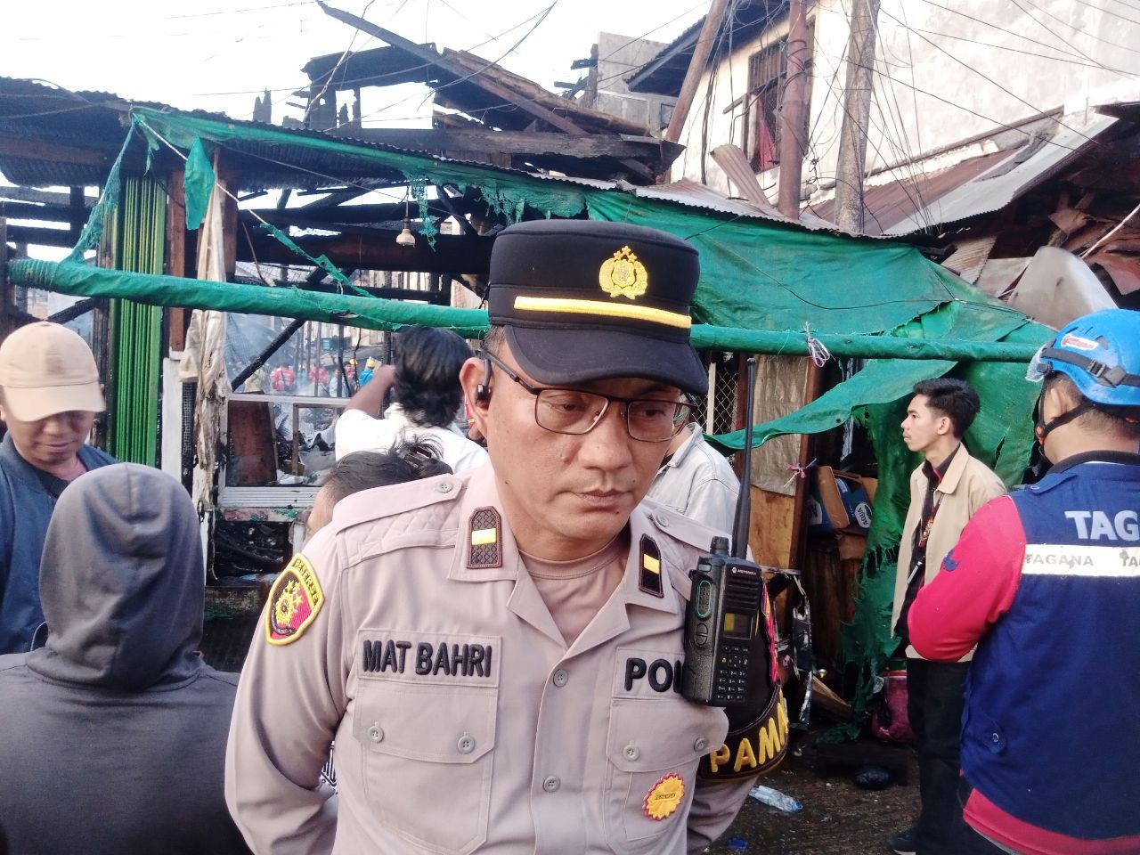 Pihak kepolisian terus melakukan pengamanan di lokasi guna mencegah gangguan keamanan serta memastikan kelancaran proses penanganan pascakebakaran. []
