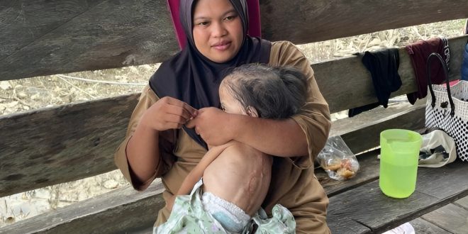 NUNUKAN – Dalam sebuah kontrakan sederhana di Jalan Ujang Dewa, Kecamatan Nunukan Selatan, hidup seorang bocah perempuan bernama Farah yang menyimpan kisah luar biasa. Bocah berusia hampir empat tahun ini tidak hanya harus menjalani kehidupan dengan keterbatasan fisik, tetapi juga melawan tiga penyakit langka sekaligus: hidrosefalus, spina bifida, dan bibir sumbing.