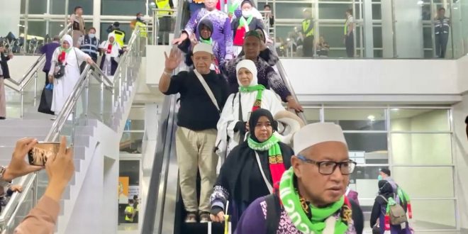 BANJARMASIN – Kedatangan jemaah haji Kloter pertama Debarkasi Banjarmasin disambut penuh haru di Bandara Internasional Syamsudin Noor, Banjarbaru, Ahad (15/06/2025) dini hari, tepat pukul 03.30 Wita.