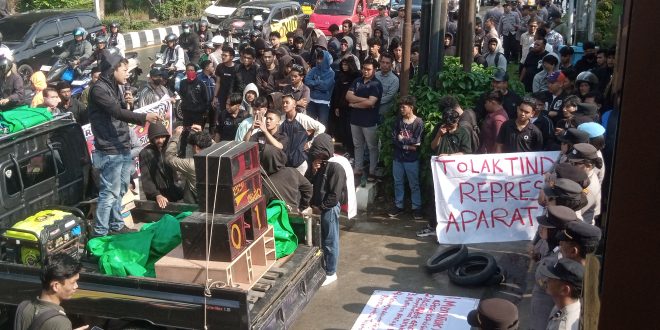 SAMARINDA – Sejumlah elemen masyarakat yang tergabung dalam Koalisi Masyarakat Anti Represif (Komar) menyuarakan kritik terhadap pola penanganan aksi unjuk rasa oleh Kepolisian Negara Republik Indonesia (Polri) yang dinilai masih cenderung mengedepankan tindakan represif. Dalam aksi penyampaian aspirasi di Kepolisian Resor (Polres) Samarinda, Jumat (17/04/2026), mereka mendesak perubahan pendekatan pengamanan yang lebih mengutamakan prinsip kemanusiaan serta penghormatan terhadap hak berekspresi di ruang publik.