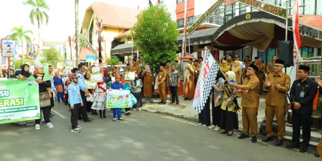 HULU SUNGAI UTARA – Pemerintah Kabupaten (Pemkab) Hulu Sungai Utara (HSU) memanfaatkan momentum Hari Jadi ke-74 untuk memperkuat budaya literasi sejak dini melalui Pawai Literasi yang diikuti sekitar 1.000 pelajar tingkat Sekolah Dasar/Madrasah Ibtidaiyah (SD/MI) hingga Sekolah Menengah Pertama/Madrasah Tsanawiyah (SMP/MTs), Selasa (28/04/2026).
