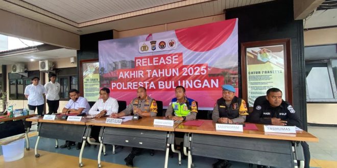 Hal itu terungkap dalam rilis akhir tahun Polresta Bulungan yang dipimpin langsung Kapolresta Bulungan Kombes Pol Rofikoh Yunianto, didampingi Pejabat Utama (PJU), di Mapolresta Bulungan, Senin (29/12/2025).