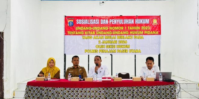 PENAJAM PASER UTARA – Kepolisian Resor (Polres) Penajam Paser Utara (PPU) menggelar sosialisasi hukum terkait pemberlakuan Undang-Undang Nomor 1 Tahun 2023 tentang Kitab Undang-Undang Hukum Pidana (KUHP) kepada masyarakat di Kantor Desa Babulu Laut, Kecamatan Babulu, Senin (06/04/2026). Kegiatan ini bertujuan meningkatkan pemahaman hukum masyarakat sekaligus mencegah potensi pelanggaran akibat ketidaktahuan terhadap aturan baru.