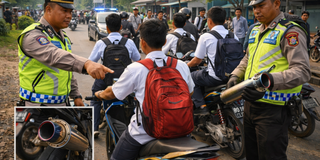 LAMANDAU – Kepolisian Resor Lamandau kembali menemukan pelanggaran lalu lintas yang melibatkan pelajar di wilayah Kota Nanga Bulik, Kabupaten Lamandau. Dalam patroli rutin yang digelar Satuan Lalu Lintas (Satlantas) pada Sabtu (17/01/2026), sejumlah sepeda motor yang dikendarai pelajar kedapatan masih menggunakan knalpot tidak standar atau knalpot racing yang dikenal dengan sebutan “brong”.
