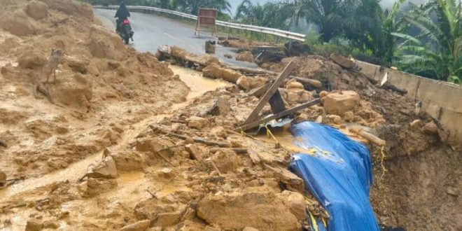 NUNUKAN – Hujan deras yang mengguyur wilayah perbatasan kembali memicu tanah longsor di Jalan Trans Kalimantan Utara, tepatnya di jalur Tulin Onsoi menuju Sei Ular, Desa Sekaduyun Taka, Senin (25/8/2025) sekitar pukul 12.38 Wita. Material longsoran berupa tanah dan bebatuan menutup sebagian besar badan jalan sehingga arus lalu lintas terhenti, terutama bagi kendaraan roda empat.