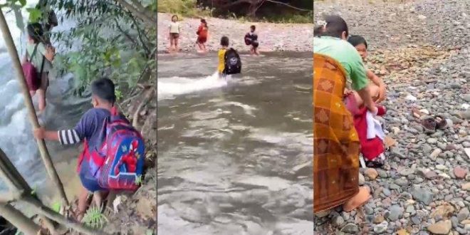 Saat ini, anak-anak SD dari Mapulu terpaksa menyeberangi Sungai Kelay untuk bisa belajar di Kampung Panaan. Setelah jembatan kayu yang menghubungkan dua kampung itu putus pada Mei 2025 lalu, akses semakin sulit.