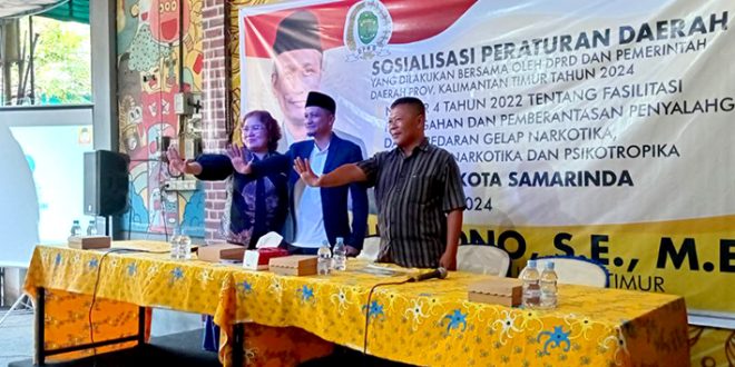 PARLEMENTARIA KALTIM – KETUA Komisi II Dewan Perwakilan Rakyat Daerah (DPRD) Provinsi Kalimantan Timur (Kaltim) Nidya Listiyono turun ke masyarakat di daerah pemilihannya. Dia menggelar sosialisasi Peraturan Daerah (Perda) Nomor 04 Tahun 2022 tentang Fasilitas Pencegahan, Pemberantasan, Penyalahgunaan, dan Peredaran Gelap Narkotika, Frekursor Narkotika dan Psikotropika.