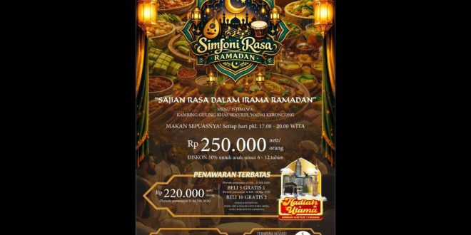 SAMARINDA – Menyambut bulan suci Ramadan 1447 Hijriah, Hotel Bumi Senyiur Samarinda yang terletak di Jalan Pangeran Diponegoro No. 17 menghadirkan program berbuka puasa bertajuk “Simfoni Rasa Ramadan” dengan tema Sajian Rasa dalam Irama Ramadan. Program ini menawarkan paket buffet iftar dengan ragam hidangan khas Nusantara hingga Timur Tengah, yang dapat dinikmati masyarakat setiap hari selama Ramadan.