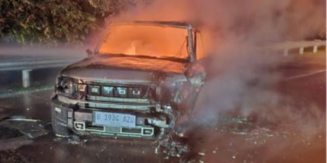 JAWA BARAT – Insiden mengerikan terjadi di ruas Tol Jagorawi KM 31 B arah Jakarta, Minggu (01/02/2026) malam. Sebuah mobil Jeep hangus dilalap api setelah terlibat tabrakan dengan BMW, membuat dua orang di dalamnya mengalami luka bakar.