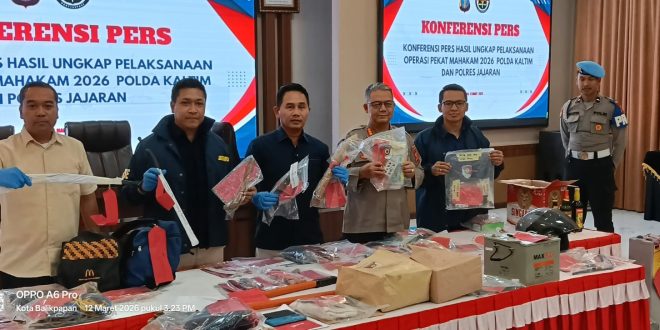 BALIKPAPAN – Kepolisian Daerah (Polda) Kalimantan Timur (Kaltim) memaparkan hasil pelaksanaan Operasi Pekat Mahakam 2026 melalui konferensi pers yang digelar di Kota Balikpapan, Kalimantan Timur, Rabu (12/03/2026). Kegiatan tersebut dihadiri jajaran Polda Kaltim bersama seluruh Polres di wilayah hukum Kalimantan Timur.