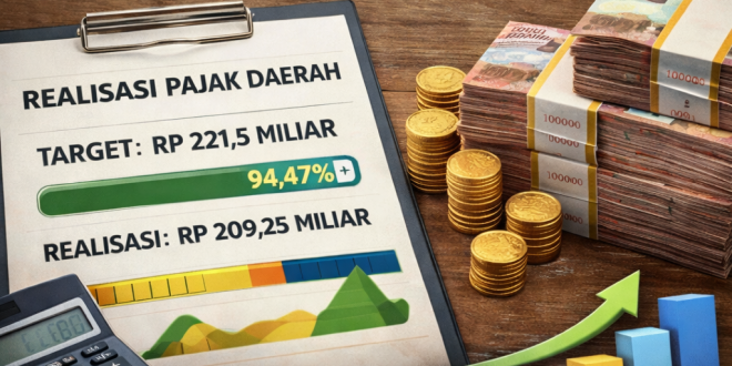 “Per 30 Desember, realisasi pajak daerah sudah mencapai 94,47 persen. Dari target Rp221 miliar lebih, yang berhasil dikumpulkan mencapai Rp209 miliar,” kata Syahruddin, Rabu (31/12/2025).