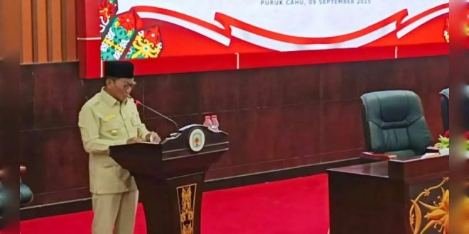 MURUNG RAYA – Pemerintah Kabupaten Murung Raya memastikan arah kebijakan dalam rancangan APBD Perubahan 2025 semakin terfokus pada kebutuhan dasar masyarakat. Hal ini ditegaskan Bupati Murung Raya, Heriyus, saat menyampaikan jawaban atas pemandangan umum fraksi-fraksi DPRD terhadap dua raperda yang dibahas, yakni pertanggungjawaban pelaksanaan APBD 2024 dan rancangan APBD Perubahan 2025.