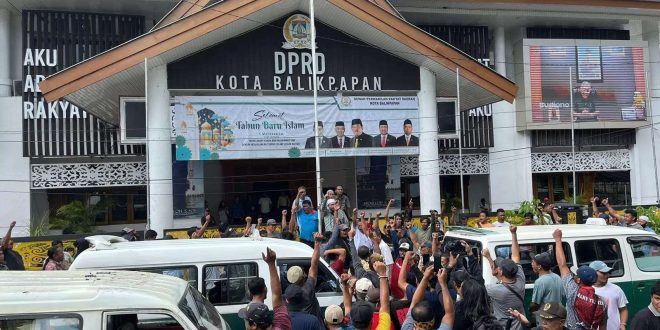 BALIKPAPAN – Ratusan sopir angkot di Balikpapan menggelar unjuk rasa di depan Kantor Pemerintah Kota Balikpapan dan DPRD Balikpapan, Rabu (17/07/2024). Mereka menuntut, operasional Bus Balikpapan City Trans atau Bacitra dihentikan.