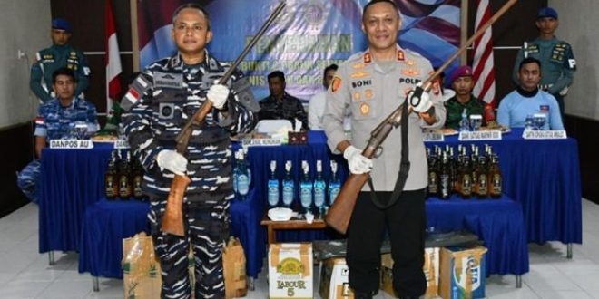 Barang bukti tersebut merupakan hasil pengungkapan dari patroli darat maupun laut yang digelar jajaran Lanal dalam beberapa pekan terakhir. Dalam penyerahan itu, Danlanal Nunukan, Letkol Laut (P) Primayantha Maulana Malik, menyampaikan bahwa barang bukti meliputi dua pucuk senjata api rakitan lengkap dengan dua butir amunisi, lima gram sabu, serta 84 botol minuman keras ilegal dari berbagai merek.