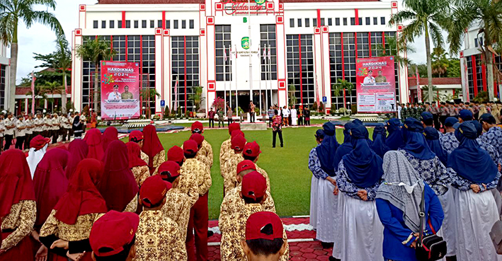 Upacara yang diikuti jajaran petinggi pratama, aparatur sipil negara (ASN) di lingkup Pemerintah Kabupaten (Pemkab) Kukar, Forum Kordinasi Pimpinan Daerah (Forkompida) serta mahasiswa dan pelajar itu dipimpin Sekretaris Daerah (Sekda) Kukar Sunggono.