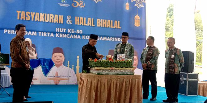 SAMARINDA – PERUSAHAAN Umum Daerah Air Minum (Perumdam) Tirta Kencana Kota Samarinda mengelar Halal Bihalal 1445 Hijriah sekaligus Tasyakuran Hari Ulang Tahun (HUT) ke-50 di lapangan tenis komplek Perumdam, Jalan Cendana, Samarinda, Kamis (18/04/2024).