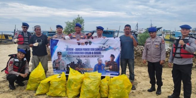 PENAJAM PASER UTARA – Dalam rangka menyambut Hari Bhayangkara ke-80, Satuan Polisi Perairan dan Udara (Sat Polairud) Kepolisian Resor (Polres) Penajam Paser Utara (PPU) menggelar aksi bersih pantai dan lingkungan di kawasan Pelabuhan Batu, Kelurahan Penajam, Kabupaten Penajam Paser Utara (PPU), Senin (13/04/2026). Kegiatan ini melibatkan personel kepolisian bersama masyarakat pesisir sebagai upaya meningkatkan kesadaran menjaga kebersihan lingkungan sekaligus mendukung pelestarian ekosistem perairan.