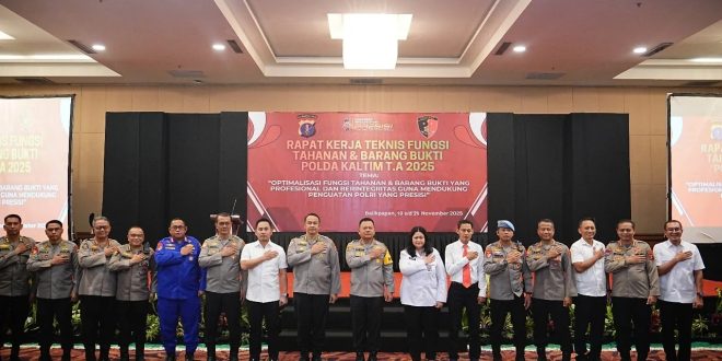 BALIKPAPAN — Kepolisian Daerah Kalimantan Timur (Polda Kaltim) menggelar Rapat Kerja Teknis (Rakernis) Fungsi Tahti 2025 pada Rabu (19/11/2025) di Ballroom Hotel Platinum Balikpapan. Kegiatan ini menjadi sorotan penting karena berfokus pada optimalisasi pengelolaan tahanan, pemasyarakatan, dan pelayanan administrasi Tahti di seluruh jajaran Polda Kaltim.