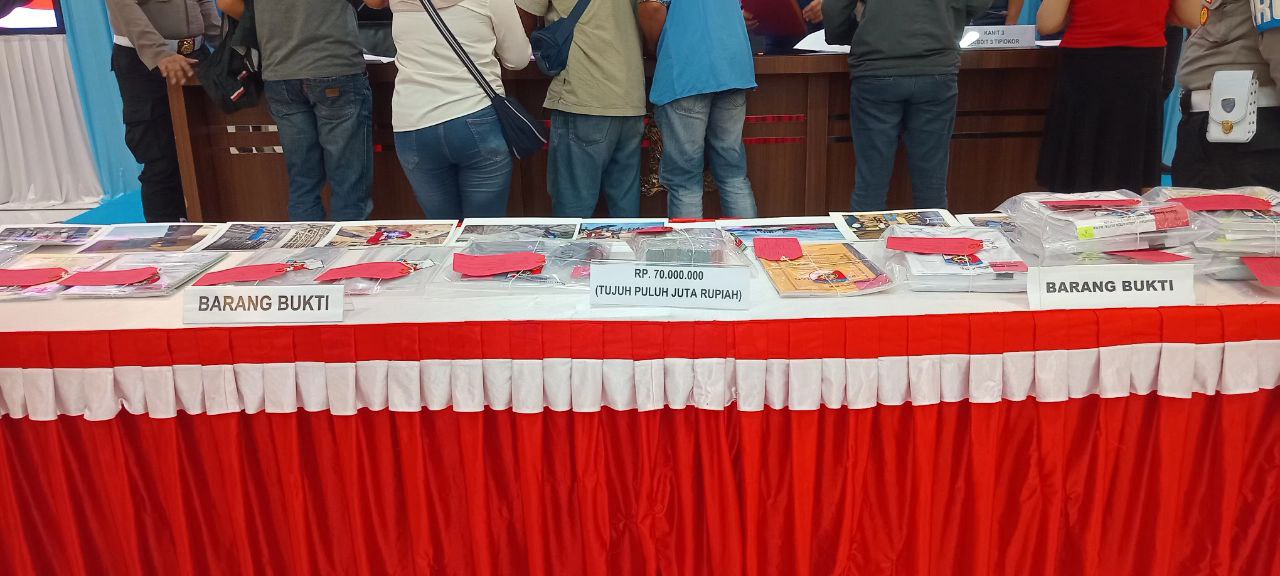 Dalam proses penyidikan, aparat kepolisian juga menyita sejumlah barang bukti. Barang bukti tersebut meliputi dokumen proyek, perangkat elektronik yang berkaitan dengan pelaksanaan kegiatan, serta uang tunai sebesar Rp 70 juta yang diduga terkait dengan perkara tersebut.