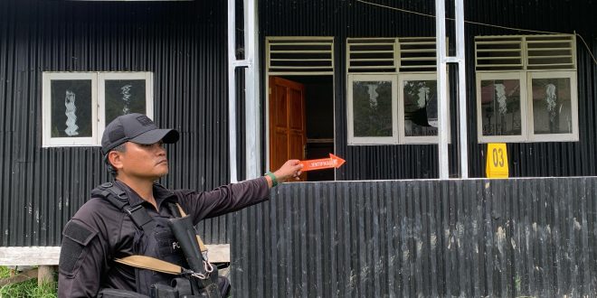 YAHUKIMO — Personel Satuan Tugas Penegakan Hukum (Satgas Gakkum) Operasi Damai Cartenz 2025 melaksanakan evakuasi serta olah tempat kejadian perkara (TKP) terkait insiden penyerangan terhadap guru honorer dan tenaga kesehatan, serta pembakaran fasilitas publik di Distrik Anggruk, Kabupaten Yahukimo, pada Senin (24/3/2025).