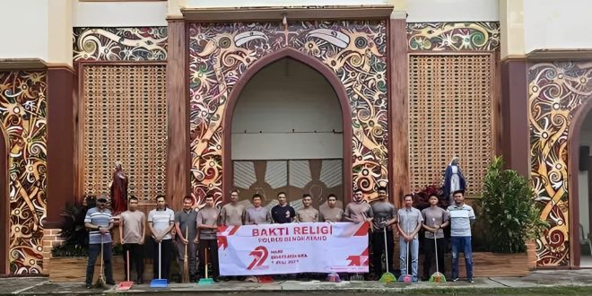 BENGKAYANG – Menjelang peringatan Hari Bhayangkara ke-79 Tahun 2025, Polres Bengkayang menunjukkan komitmennya dalam membangun harmoni sosial melalui kegiatan bakti sosial religi. Kegiatan ini dilaksanakan Sabtu, (14/06/2025), dengan membersihkan rumah ibadah yang ada di wilayah Kabupaten Bengkayang.