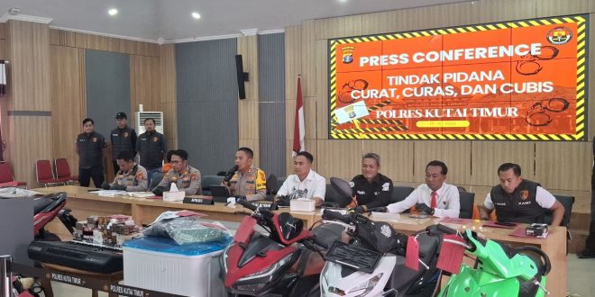 KUTAI TIMUR – Polres Kutai Timur (Kutim) merilis hasil penanganan kasus kriminalitas yang terjadi sepanjang Oktober hingga November 2025. Dalam periode tersebut, aparat berhasil mengungkap 23 kasus tindak pidana pencurian dengan pemberatan (curat), pencurian dengan kekerasan (curas), pencurian biasa (cubis), serta satu perkara kekerasan dalam rumah tangga (KDRT). Total kerugian dari seluruh kejadian itu diperkirakan mencapai sekitar Rp97 juta.