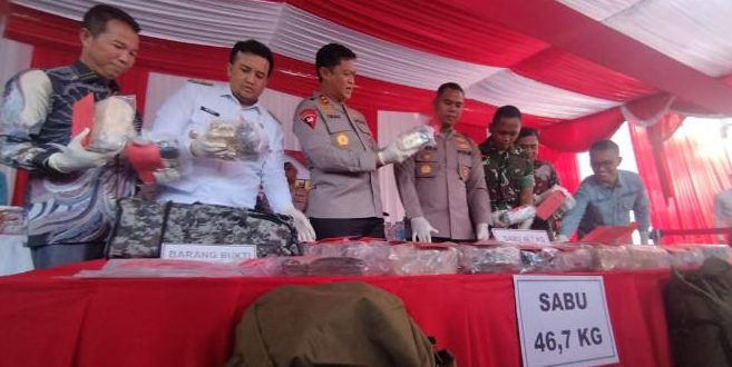 “Dari hasil penyelidikan itu, anggota berhasil menangkap empat orang tersangka dengan barang bukti sabu seberat 46,7 kg,” jelas Kapolda.