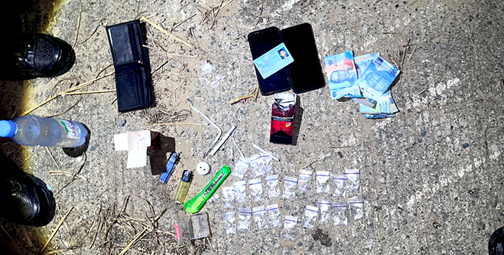 Setelah dilakukan penggeledahan menyeluruh, petugas menemukan 21 poket sabu beserta perlengkapan yang digunakan untuk mengkonsumsi narkoba, seperti pipet kaca, sedotan, dan korek api.