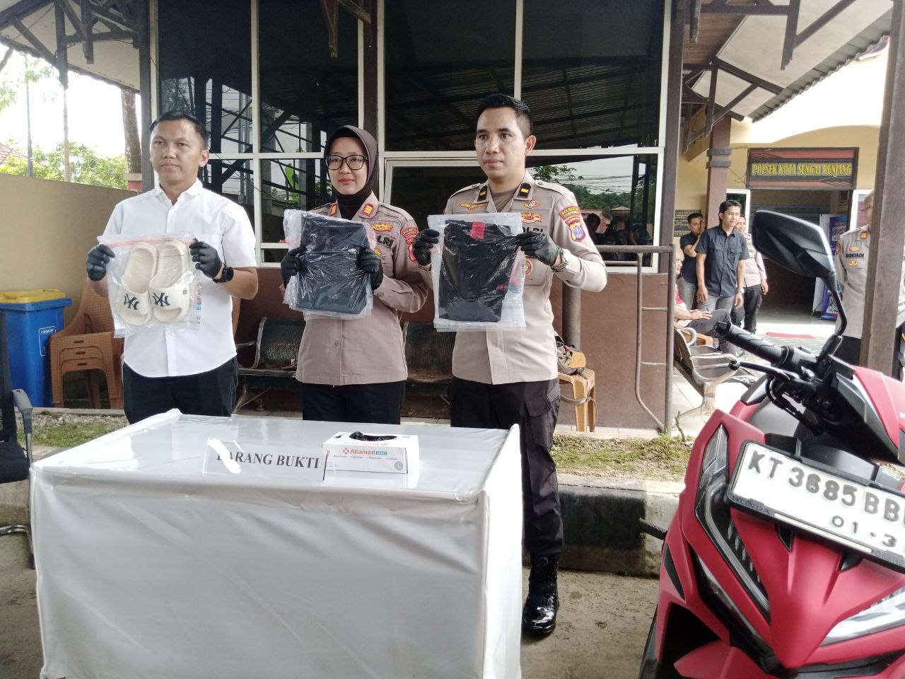 Sebagai bagian dari proses penyidikan, aparat kepolisian juga mengamankan sejumlah barang bukti yang diduga berkaitan dengan peristiwa tersebut. Barang bukti yang disita antara lain satu unit sepeda motor Honda Vario berwarna merah yang digunakan pelaku saat menjalankan aksinya serta pakaian yang dikenakan tersangka ketika kejadian berlangsung.