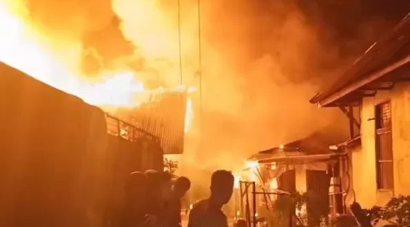 PONTIANAK – Kebakaran hebat terjadi di kawasan padat penduduk Gang Baru, Jalan Merdeka, Kelurahan Tengah, Kecamatan Pontianak Kota, pada Sabtu malam (5/7/2025). Insiden tersebut menghanguskan dua unit rumah dan menyebabkan tiga orang petugas pemadam mengalami luka selama proses pemadaman api. Kobaran api yang cepat membesar memicu kepanikan warga, sebagian berusaha menyelamatkan barang-barang, sementara yang lain membantu proses pemadaman secara mandiri.