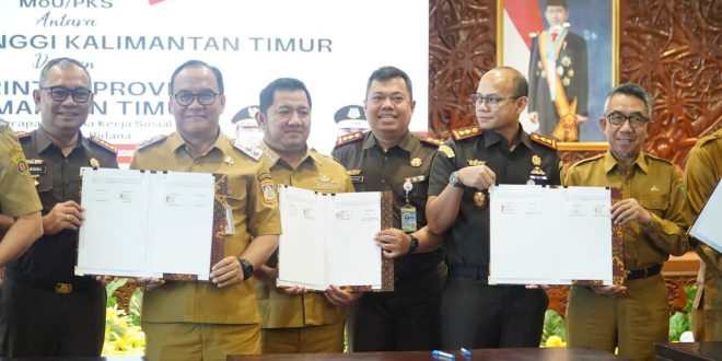 SAMARINDA — Upaya memperkuat koordinasi penegakan hukum di Kalimantan Timur (Kaltim) kembali mengemuka melalui penandatanganan Nota Kesepahaman (MoU) dan Perjanjian Kerja Sama (PKS) antara Kejaksaan Tinggi Kaltim, pemerintah provinsi, serta seluruh pemerintah kabupaten/kota. Kegiatan yang berlangsung di Ruang Ruhui Rahayu, Kantor Gubernur Kaltim, itu sekaligus menandai kesiapan daerah dalam mengimplementasikan pidana kerja sosial sebagai bagian dari kebijakan hukum baru yang lebih menekankan pemulihan sosial.