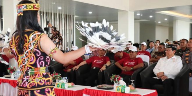 Kedatangan Menag disambut hangat oleh Presiden Adat Dayak, Marthin Billa, dengan pelukan persaudaraan khas Kalimantan. Diiringi tarian tradisional Kencet Leto Kenyah dari para siswi SMAN 1 Tanjung Selor, suasana penyambutan berlangsung penuh keakraban dan kebanggaan lokal.