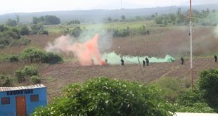 Usai meninjau pasukan, Presiden yang juga didampingi Menteri Lingkungan Hidup Siti Nurbaya, Menteri Pendidikan Anis Baswedan, dan Seskab Pramono Anung, mencoba melintasi kawasan yang habis terbakar dengan berjalan kaki sekitar 100 meter.