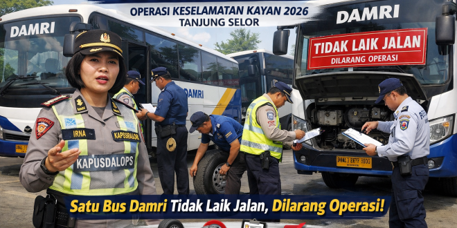 TANJUNG SELOR – Keselamatan penumpang transportasi umum kembali menjadi sorotan. Dalam operasi terpadu Operasi Keselamatan Kayan 2026, petugas gabungan melakukan pemeriksaan menyeluruh terhadap armada bus penumpang Damri yang beroperasi di Tanjung Selor, Rabu (04/02/2026).