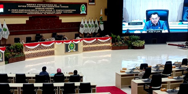 Paripurna dipimpin Ketua DPRD Kaltim Hasanuddin Mas’ud, didampingi Wakil Ketua DPRD Kaltim Muhammad Samsun, Seno Aji, dan Sigit Wibowo. Sementara, kehadiran Pj Gubernur Kaltim diwakili oleh Asisten II Setdaprov Kaltim Ujang Rachmad.