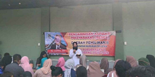 NUNUKAN – Kegiatan reses Ketua DPRD Nunukan, Hj. Leppa, di wilayah Nunukan Selatan pada Selasa (17/02/2026) menjadi wadah penyampaian berbagai kebutuhan mendasar masyarakat. Pertemuan yang berlangsung di Sasini Café & Restro tersebut dihadiri tokoh masyarakat, ketua RT, pembudidaya rumput laut, serta pelajar.