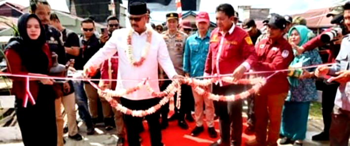 MUARA KAMAN – DITANDAI pengguntingan pita, penandatanganan prasasti dan pemecahan kendi, Bupati Kutai Kartanegara (Kukar) Edi Damansyah meresmikan Jembatan Desa Sedulang, Kecamatan Muara Kaman, Kukar, Jumat (12/07/2024).