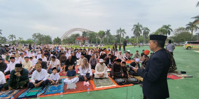 Salah satu khatib di halaman Kantor Bupati Kukar, Machnun Uzni, yang menjabat Wakil Sekretaris Pimpinan Wilayah Muhammadiyah (PWM) Kalimantan Timur (Kaltim) sekaligus Sekretaris Majelis Ulama Indonesia (MUI) Kaltim, menyampaikan khutbah bertema pentingnya kasih sayang dalam keluarga serta menjaga harmoni sosial sebagai bagian dari ketakwaan.