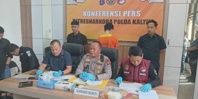 BALIKPAPAN – Dalam press release yang digelar di ruang rapat Ditresnarkoba Polda Kaltim, Kamis (27/11/2025), petugas memaparkan penangkapan seorang kurir sabu dengan barang bukti hampir satu kilogram.